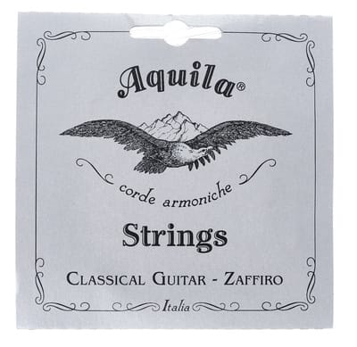 De Aquila 129C Zaffiro Series is een set snaren voor klassieke en concert gitaren. Deze 6-snarige set is ontworpen voor E-tuning (EADgbe) en heeft een normale spanning. De diktes van de snaren zijn 0,70, 0,82, 1,01, 0,70w, 0,88w en 1,07w. De diskant snaren zijn gemaakt van Bionylon, een 100% plantaardig derivaat. De bassnaren zijn omwikkeld met verzilverd koper en hebben een Nylgut multifilament kern.