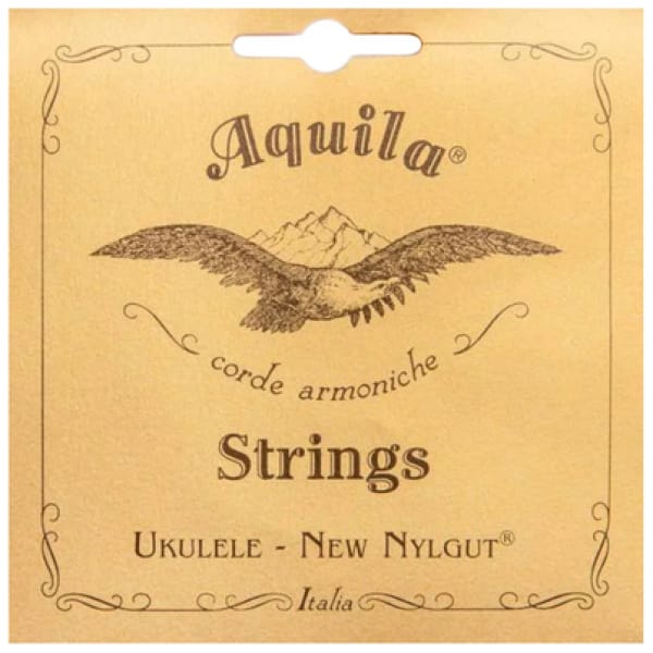 Aquila 34U Ukulele String Set, strings for Tenor Ukulele, made from New Nylgut, for GDAe tuning (violin, mandolin/ quint tuning), G-string wound with silver-plated copper, D-string wound with steel, gauges (mm): 0.42, 0,63, 0,60w, 0,70w, white, similar sound to natural gut, defined, singing tone with excellent response, short stretching time and better tuning stability than regular nylon, higher density and natural, less metallic tone than fluorocarbon, Color-coded string ends, made in Italy