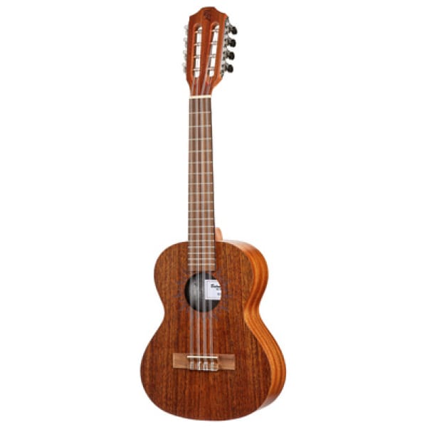 De Baton Rouge V2-T8 sun is een Tenor ukulele met 8 snaren, inclusief een lage G-snaar, hoge C-snaar en unison E & A-snaar. De body is gemaakt van mahonie en de hals van nato. Het fretboard en de brug zijn gemaakt van walnoot en hebben 18 frets. De schaal is 43 cm en de topkam breedte is 3,7 cm. De topkam en brug inlays zijn gemaakt van nubone en de snaren zijn van Aquila nylgut. De stemmechanieken zijn van chroom met zwarte vleugels en de rosette is gelaserd in de vorm van een zon. De kleur van de ukulele is natuurlijk mat met open poriën.
