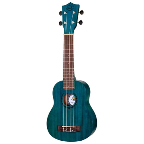Bumblebee Ukuleles BUS23 Soprano Blue, Sopraan Ukulele, Bovenblad: mahoniehout, Onderblad en zijkanten: mahoniehout, Hals: Meranti, Fretboard en brug: Kuku, Topkambreedte: 38mm, 15 Frets, Gegraveerd klankgatdesign en kopplaatlogo, Open verchroomde stemmechanieken met zwarte knoppen, Afwerking: open pore, Kleur: Blauw