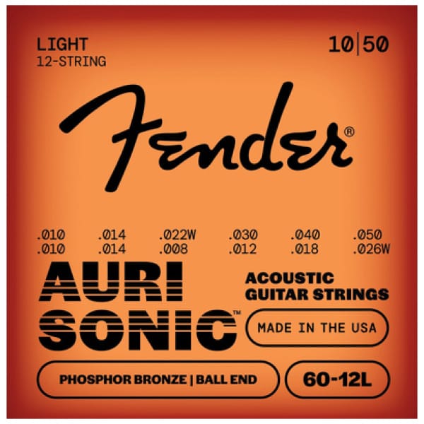 Fender 60-12L Phosphor Bronze 12-Set, Set of Strings for 12-String Acoustic Guitar, Gauges: .010-.010, .014-.014, .022-.008, .030-.012, .040-.018, .050-.026w, Material: Phosphor bronze, With ball end