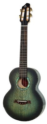 Flight A10QM Aqua Blue 10th Anni, Tenor ukulele, 10th Anniversary model, Bovenblad: massief gevlamd esdoornhout, Body: massief gevlamd esdoornhout, Hals: esdoornhout, Fretboard: ebbenhout, Offset fretboard inlays, Slotted headstock, Comfort edge, Abalone rozet, Topkambreedte: 38 mm, Topkam vervaardigd van been, 19 Frets, Ebbenhouten brug met brugzadel van been, Kleur: Aqua Blue, Incl. deluxe gig bag