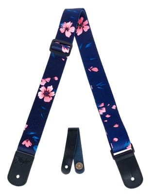 Flight S35 Sakura Ukulele Strap, Ukelele draagband, Materiaal: polyester, In lengte verstelbaar, De uiteinden zijn gemaakt van hoogwaardig leer, Kunststof gesp om schade en krassen te voorkomen, Kersenbloesem design