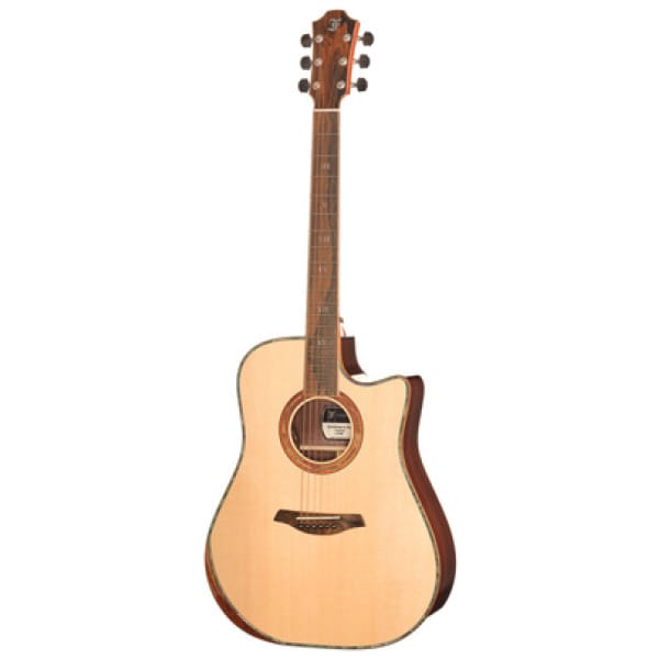 Furch Red Performance Dc-SR a; Cutaway Acoustic-Electric Guitar; Shape: Dreadnought (D); Top: Solid Sitka Spruce; Back: Solid Indian Rosewood; Sides: Solid Indian Rosewood; Neck: African Mahogany; Fingerboard: Ziricote, figured; Inlays: White Pearl Roman Numbers; 20 Frets; Nut: TUSQ; Nut Width: 45 mm (1,77″); Scale: 650 mm (25,6″); Fingerboard Radius: 400 mm (15,7″); Bridge Material: Ziricote, figured; Saddle: Ebony with pearl eyes; Pickguard: Transparent; Binding: Hawaiian Koa with white contrast line; Pickup: L. R. Baggs EAS-VTC; Tuners: Gotoh 510, Silver Patina; Incl. Case; Colour: Natural; Stock Strings: D’Addario XS PhBr 12-53; Made In Czech Republic, made in europe (czech republic)