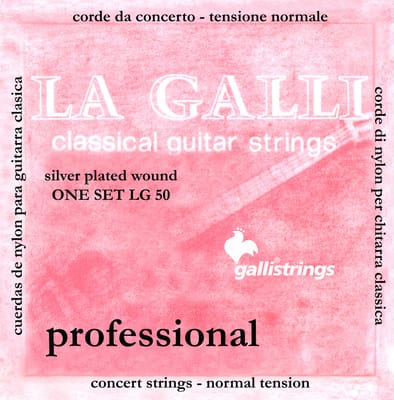 Galli Strings LG50 La Galli Classical Guitar, Snarenset voor concertgitaar, Medium Tension, e-, h- En g-string vervaardigd uit transparant nylon, d,- a- En E.zijde vervaardigd uit nylon gewikkeld met verzilverd koperdraad, Snaardiktes: 029-033-041-029-037-044