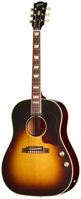 Gibson J-160E Original VS, Westerngitaar met pickup, Bodyvorm: Jumbo (J), Bovenblad: massief sitkasparren, Achterblad en zijkanten: massief mahonie, Hals: mahonie, Fingerboard: palissander, “Trapeze” fingerboard inlays, Binding: bovenblad 3-laags, achterblad eenlaags, fingerboard eenlaags, Scale: 628 mm (24,75″), Topkambreedte: 43,8 mm (1,73″), Topkam van been, 20 Frets, Pickup: P-90 DC, Tortoise slagplaat, Palisander brug met brugzadel van been, Gotoh stemmechanieken, Kleur: Vintage Sunburst, Incl. koffer, Made in the USA