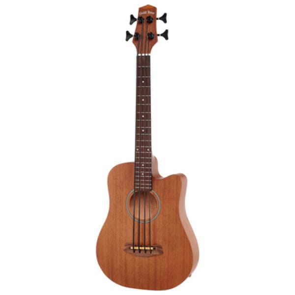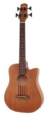 Gold Tone Micro Bass 23 w/Bag, Akoestische bas, Top: ergo glide van mahonie, Body van mahonie, Mahonie hals, Walnoothouten fretboard, Dot inlays, 2-weg verstelbare trussrod, 20 fretten, Scall: 584 mm, Breedte nut: 42,9 mm, Walnoothouten brug, Zadel van been, Hals-body verbinding op 14e fret, Butterfly bas style mechanieken, Elektronica: ingebouwde actieve piezo element met tuner, controlleerbare volume, bas en high, Snaren: Aquila polymer, Finish: naturel mat, Incl. gigbag