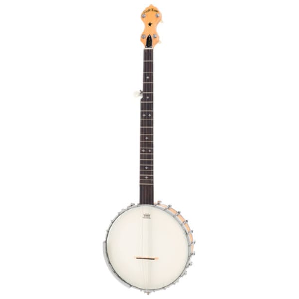 Gold Tone MM-150 Mountain Banjo w/Case, 5-Snarige banjo, Hals: esdoornhout, Fretboard: palissanderhout, Rim: multiplex esdoornhout, Vel: 11″ Remo HC Renaissance, Tone Ring: White Lady, Snowflakes fretboard inlays, Zwarte ABS-binding, 2-Voudig verstelbare trekstang, Scale: 665 mm, Topkambreedte: 30,2 mm, Topkam van been, Esdoornhouten brug met ebbenhouten deklaag, No-Knot 5-snarig staartstuk, 18 Frets, 24 Spanschroeven, Messing spanringen, Vintage armleuning, Planetaire tuners, Chrome hardware, Stemming: G-D-G-B-D, Kleur: Naturel hoogglans, Incl. koffer