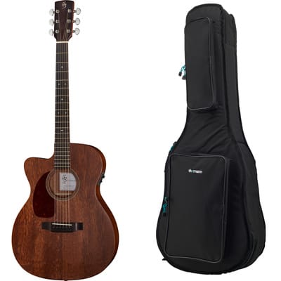 De Harley Benton Cust. Line CLA-15MCE LH Bundle is een pakket dat bestaat uit een linkshandige Western gitaar met pickup en een bijpassende gigbag. De gitaar heeft een Auditorium 000-14 bodyvorm met cutaway en is gemaakt van Gabon mahoniehout met een dovetail constructie en scalloped X-bracing. Het bovenblad is massief Gabon mahoniehout en de hals en fretboard zijn gemaakt van Gabon mahoniehout en Pau Ferro, respectievelijk. De hals heeft een oval gemodificeerd C-form en snowflake fretboardinlays. De gitaar heeft een mensuur van 643 mm, een topkambreedte van 43 mm en een topkam van been. Er zijn 20 frets en een Pau Ferro brug. De gitaar is uitgerust met een Fishman Presys-II Preamp System met geïntegreerde tuner en DLX Chrome Diecast mechanieken. De originele snaren zijn Daddario XTAPB Light .012 – .053 (Art. 471307) en de kleur is Natur matt. De geschikte koffer is art. 208576 (niet bij de levering inbegrepen). De bijpassende gigbag is de Thomann Classic-Guitar Gigbag BK, geschikt voor 4/4 Concert-Gitaren. De gigbag heeft een foam padding van 20 mm dik, backpack straps en een draaggreep, metalen fittings en een extra buitenvak voor bladmuziek en accessoires. De afmetingen binnenkant zijn ongeveer 106 x 40 x 12 cm en de kleur is zwart.