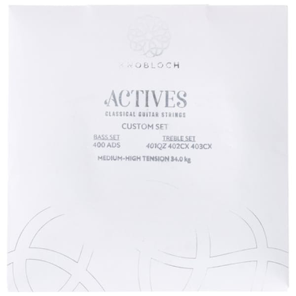 Knobloch Strings 400ADC1Q – Custom Set; String Set for Classical Guitar; Medium-High Tension, Discant Strings 1st String QZ Nylon 401QZ 2nd and 3rd String in CX Carbon 402CX,403CX; Bass String Actives Double Silver 400ADS;