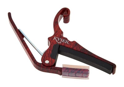 Kyser Quick-Change Capo Rosewood, Capodastro voor concert- en flamencogitaren met vlak/recht fingerboard, Lagere veerdruk, Aangepast aan nylon snaren, Eenvoudig te bedienen met één hand, Robuust en lichtgewicht aluminium ontwerp, Kleur: Rosewood, Made in the USA