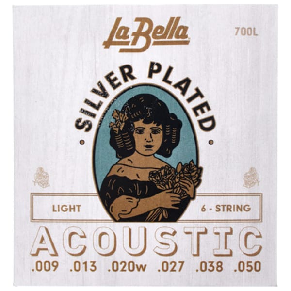 De La Bella 700L Silver Plated is een snarenset voor westerngitaren met een lichte spanning en snaardiktes van .009 tot .050. De snaren zijn handgewikkeld met verzilverd koperdraad op een stalen kern, wat zorgt voor een heldere en crispy klank. De snaren hebben iets minder spanning dan omwonden bronzen of messing snaren en zijn verpakt onder gemodificeerde atmosfeer om aanslag te voorkomen en de versheid te behouden. De wikkeling is van Silver Plated Copper en de snaren zijn gemaakt in de USA.