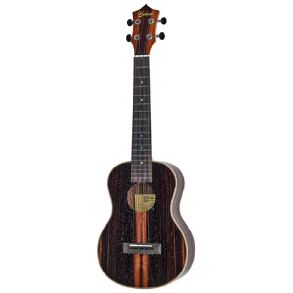 Leolani Macassar Ebony Tenor Ukulele, Tenor Ukulele, Body: Makassar ebony, Neck: Okoume, Fingerboard: Reconstituted rosewood, Mother-of-pearl dot fingerboard inlays, Leolani logo maple headstock inlay, Quilted maple binding on body and top, Scale length: 433 mm, Total length: 660.4 mm, Natural bone saddle, 18 frets, Reconstituted rosewood bridge with bone saddle, Enclosed machine heads with black buttons, Factory strings: Aquila B. Black, Colour: Natural, matte, Designed by Hawaiian People
