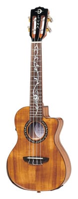 Luna Guitars Uke Vineyard Koa Bevel C PU, Concert ukelele met pickup, Met cutaway, Bovenblad: massief A-grade koa, Achterblad en zijkanten: koa, Hals: mahonie, Fretboard: palissander, Pearl Vine fretboard inlays, Scale: 381 mm, Topkambreedte: 35,1 mm, Topkam vervaardigd uit been, 18 Frets, Pickup: Fishman Kula, Open mechanieken met chromen knoppen, Voorgemonteerde snaren: Aquila Super Nylgut, Incl. gigbag