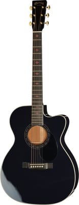 Martin Guitar Custom Shop OM Spruce, Acoustic Guitar, Custom Shop model, Style: Auditorium (000), Top: Solid spruce, Back and sides: Solid mahogany, Neck: Mahogany, Fingerboard: Ebony, Scalloped Diamonds fingerboard inlays with red stone and Mother-of-Pearl edge, Antique white binding, Fingerboard radius: 406 mm (16″), Scale: 645 mm (25.4″), Nut width: 44.5 mm (1.75″), Bone nut, 20 frets, Black pickguard, Bridge material: Black ebony, Saddle: Compensated bone, Grover Gold V97-18GA StaTite machine heads with 18:1 gear ratio and vintage buttons, Colour: Natural, Includes case, Made in USA