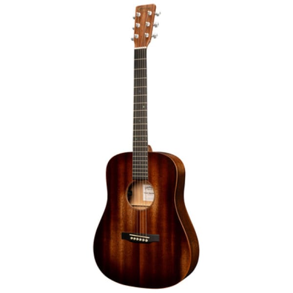 Martin Guitars D Jr E lefthanded; lefthanded Cutaway Western guitar with pickup; Top: Spruce; Back & sides: Sapele; Neck: Mahogany; Fingerboard: Ebony (Diospyros Crassiflora); 20 frets; Nut width: 44.5 mm (1.75‘); Scale length: 632 mm (24.9’); Bridge material: Richlite; Pickup: Martin E-1; Incl. softlight case; Colour: Dark Mahogany Distressed; Original strings: Authentic Acoustic Lifespan 2.0 – Light MA540T
