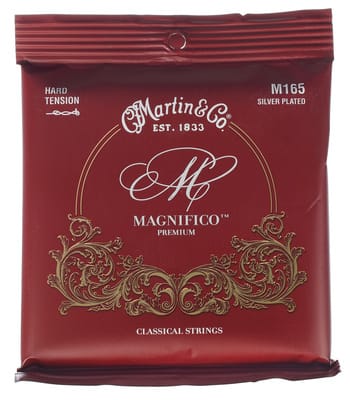 Martin Guitar M165 Classical Magnifico HT, Snarenset voor Concertgitaar, Diktes: .026 / .032 / .037 / .030 / .036 / .043, Hard tension, Nylon kern met verzilverde staalwikkeling