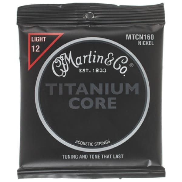 Martin Guitars MTCN160 Titanium Strings, Snarenset voor akoestische gitaar, Diktes: .012, .016, .026, .034, .044, .055, Titanium kern omwonden met nikkel en cryogeen behandelde edelstalen snaren