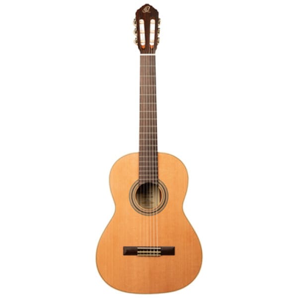 Ortega R18S-L, Concertgitaar, Lefthand / linkshandig model, Bovenblad: massief ceder, Achterblad en zijkanten: bubinga, Hals: Afrikaans mahonie, Fingerboard: palissander, Scale: 650 mm (25,59″), Topkambreedte: 51 mm (2,01″), 19 Frets, Chroom Lyra-design stemmechanieken met witte stemknoppen, Voorgemonteerde snaren: Knobloch EDQ 34.0 MED/HIGH Tension, Kleur: Naturel mat, Incl. Pro gigbag