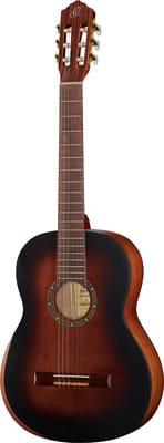 De Ortega R55DLX-BFT is een klassieke gitaar van 4/4 grootte met een massief Engelmann vurenhouten bovenblad en Catalpa onderblad, zijkanten en armsteun. De hals is gemaakt van Nato en het fretboard van notenhout. De mensuur is 650 mm (25,59 inch) en de topkambreedte is 52 mm (2,04 inch). De gitaar heeft een zwarte ABS body binding en een kopplaat met notenhoutfineer. De brug is gemaakt van notenhout en er is een 2-standen truss rod aanwezig. De afwerking is open poriën en de kleur is Bourbon Fade.