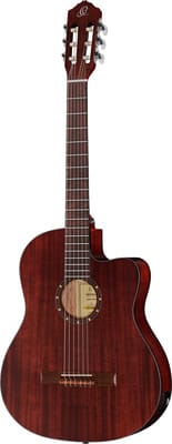 De Ortega RCE125MMSN is een klassieke gitaar met pickup en een Thinline cutaway design. De body is 85 mm diep en gemaakt van mahoniehout, net als de onderblad, zijkanten en hals. Het fretboard is van notenhout en heeft 19 frets. De gitaar heeft een Ortega Magus Pro pickup en wordt geleverd met voorgemonteerde Savarez 510CJ snaren. De afwerking is open pore voor de body en mat voor de hals, in de kleur naturel. Een gigbag is inbegrepen.