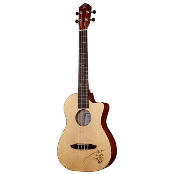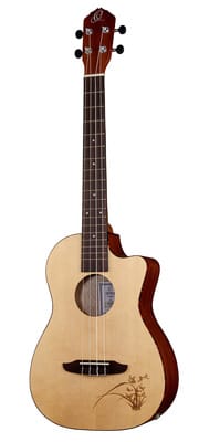 De Ortega RU5CE-BA Baritone is een bariton ukulele die is uitgerust met een cutaway. Het bovenblad van de ukulele is gemaakt van sparrenhout, terwijl de body is vervaardigd uit Sapele. De fretboard en brug zijn gemaakt van walnoot, wat zorgt voor een uitstekende speelbaarheid en een heldere klank. De schaallengte van de ukulele is 485 mm, terwijl de topkam breedte 38 mm bedraagt. De gesloten DieCast tuners zorgen voor een nauwkeurige afstemming van de snaren. Bovendien is de Ortega RU5CE-BA Baritone uitgerust met de Ortega MagusUke electronica, die een ingebouwde tuner bevat. De ukulele is afgewerkt in een natuurlijke matte kleur en is voorzien van een lasergravure.