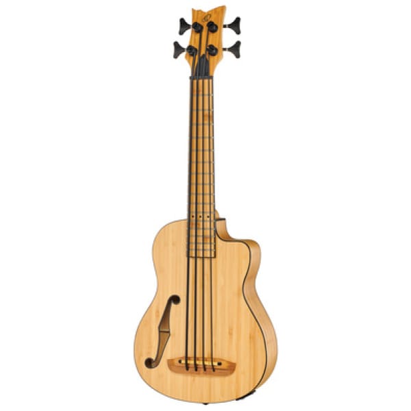 De Ortega RUNAB-UB is een Bas-Ukulele met Pickup uit de Bamboo serie. Deze uitvoering is voorzien van een cutaway, wat het spelen op de hogere frets vergemakkelijkt. Het bovenblad, achterblad en zijkanten zijn gemaakt van massief bamboe, wat zorgt voor een heldere en warme klank. De hals en het fretboard zijn ook gemaakt van bamboe, wat bijdraagt aan de duurzaamheid van het instrument. De topkambreedte is 45 mm en de scale is 530 mm, met 16 frets. De Ortega MagusUkePro pickup zorgt voor een uitstekende versterking van het geluid. De brug is ook gemaakt van bamboe en de zwarte die-cast stemmechanieken zorgen voor een stabiele stemming. De kleur van de Bas-Ukulele is naturel mat en wordt geleverd inclusief gigbag.