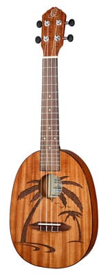 De Ortega RUPA5MM Concert Pineapple is een ukulele uit de Ananas-serie met een concert maat. De body is gemaakt van sapeli en de hals van mahonie, met een fretboard van sonokelin en 18 frets. De DieCast tuners hebben zwarte plastic knoppen en de standaardbesnaring bestaat uit Aquila Nylgut snaren. De kleur is zwart satijn met een lasergravure van palmbomen.