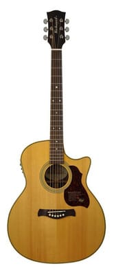 Richwood G-65CE VA Master Series, Westerngitaar, Bodyvorm: auditorium met cutaway, Body: palissander, Bovenblad: massief vuren, Hals: Indisch mahonie, Fingerboard: Indisch palissander, Scale: 650 mm (25,59″), Fingerboardradius: 14″, Topkambreedte: 43 mm (1,69″), Halsfinish: Satin, 3-Ring rosette, Pickupsysteem: Fishman Presys, Der Jung stemmechanieken, Voorgemonteerde snaren: D’Addario EXP16 gecoat fosforbrons, Kleur: Naturel Gloss