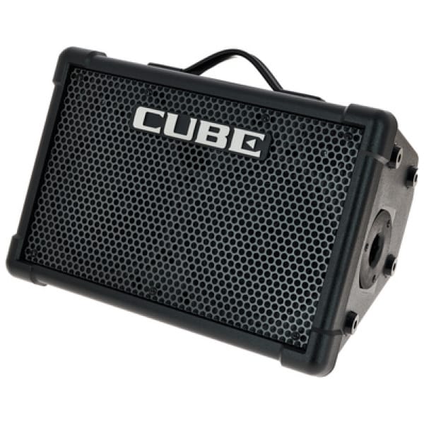 De Roland Cube Street EX is een batterij-aangedreven gitaar comboversterker met 4 kanalen en een vermogen van 50/25/10 Watt. Het heeft 2 luidsprekers en 2 tweeters voor stereowerking, geïntegreerde effecten zoals chorus, delay en verstelbare reverb, en een 3-band EQ. Het is I-CUBE-Link-capabel en heeft een stereo line-in, AUX-In en opname via CUBE JAM app. Het kan worden gevoed via meegeleverde voeding of 8 AA-batterijen (tot 20 uur werking in ECO-mode). Het heeft ook een schakelbare stereo link om 2 Cube street EX aan elkaar te koppelen, 2 mono line uitgangen, koptelefoonuitgang en 2 footswitch aansluitingen voor effect schakeling. Het weegt ongeveer 7,4 kg en is verkrijgbaar in zwart. Batterijen zijn niet inbegrepen.