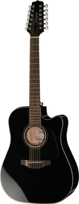 De Takamine GD30CE-12B is een 12-snarige westerngitaar met pickup. Het ontwerp is een dreadnought met cutaway en het bovenblad is gemaakt van massief sparren. De achterkant en zijkanten zijn van mahonie en de hals is ook van mahonie met een fretboard en brug van ovangkol. De gitaar heeft een matte hals-finish, 20 frets, een scale van 643 mm en een topkambreedte van 48 mm. De Takamine TP-4TD preamp heeft een ingebouwd stemapparaat en de gitaar wordt geleverd met voorgemonteerde D’Addario EXP38 snaren. De kleur is zwart hoogglans.