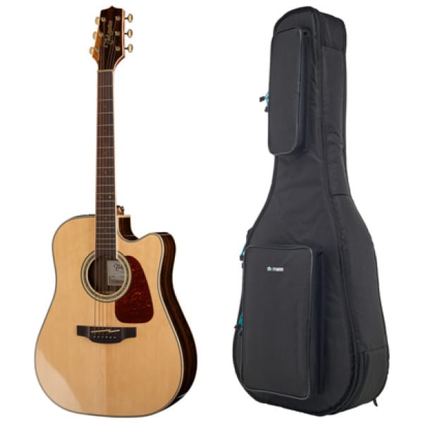 Takamine GD90CEZC-NAT w/Bag@+*Pakketaanbieding bestaande uit*, Takamine GD90CEZC-NAT@+*Westerngitaar met Pickup*, Ontwerp: dreadnought met Cutaway, Bovenblad: massief sparren, Achterblad en zijkanten: ziricote, Hals: mahonie, Fretboard met binding: ovangkol, Brug: ovangkol, Scale: 643 mm, Topkambreedte: 43 mm, 20 Frets, Pickup: Takamine TP-4TD preamp met geïntegreerd stemapparaat, Klankgatrozet: abalone, Vergulde hardware, Kleur: Naturel Hoogglans, Incl. gigbag, Thomann Acoustic-Steel Gigbag BK@+*Nylon gigbag voor westerngitaar*, Gemaakt van kwalitatieve materialen, Met 20 mm schuimstof padding, Afmetingen binnenzijde (L x B x D): 111 x 42 x 13 cm, Bodembescherming op het onderste frame, Met rugzak uitrusting, Metalen fittings, Met extra buitenvak voor bladmuziek en accessoires, Voorvak 1: ca. 37 x 24 x 5 cm, Voorvak 2: ca. 33 x 11 x 5 cm, Interne afmetingen (LxBxD): 111 x 42 x 13 cm, Kleur: zwart