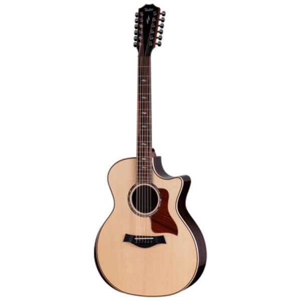 Taylor 854ce Next Generation, 12-Snarige westerngitaar met pickup, Bodyvorm: Grand Auditorium met cutaway, Bovenblad: massief sitkasparren, Scalloped V-class bracing, Achterblad & zijkanten: Indisch palissander, Gelijmde hals met Action Control System: mahonie, Fingerboard: Crelicam-ebben, Element fingerboard inlays, Palisander armsteun, Eenvoudige, groene rozet, Fingerboardradius: 381 mm (15″), Scale: 648 mm, Topkambreedte: 47,6 mm, Micarta topkam, Pickup: Taylor Claria Pickup System, Palissanderhouten slagplaat, Ebbenhouten brug, Taylor Nickel mini stemmechanieken, Kleur: naturel hoogglans, Incl. Taylor Deluxe koffer, Made in the USA@+Opmerking: registreer uw Taylor-gitaar om uw garantie te verlengen tot 12 jaar.