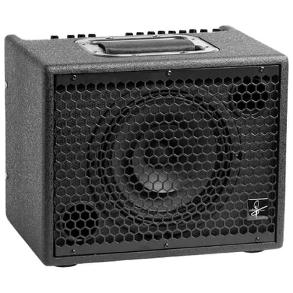 Udo Roesner Da Capo 75, Acoustic Combo Amplifier, Power: 75 watts, Dynamic range: 92 dB-A, Speaker: 8″ Coax, Sensitivity: 93.1 dB SPL 1m/1w, Housing with bass reflex, Two channels, each with XLR/jack combo input, 3-band EQ and DI output, Aux input: 3.5 mm stereo mini jack, Two line outputs: Preamp level and -10 dBV, External send / return effect loop, Headphone connector, Six digital effect presets: Two reverbs, two delays, reverb+delay, chorus (one delay effect controllable via footswitch), Weight: 7.5 kg, Dimensions: (L x W x H): 325 x 245 x 265 mm, Colour: Black, Includes gig bag@+*Note:* Footswitch not included.